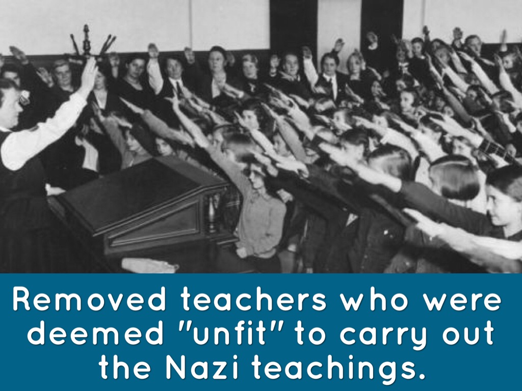 Removed teachers who were deemed "unfit" to carry out the Nazi teachings.
