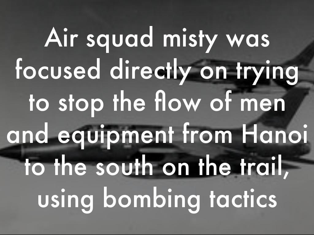 Air squad misty was focused directly on trying to stop the flow of men and equipment from Hanoi to the south on the trail, using bombing tactics