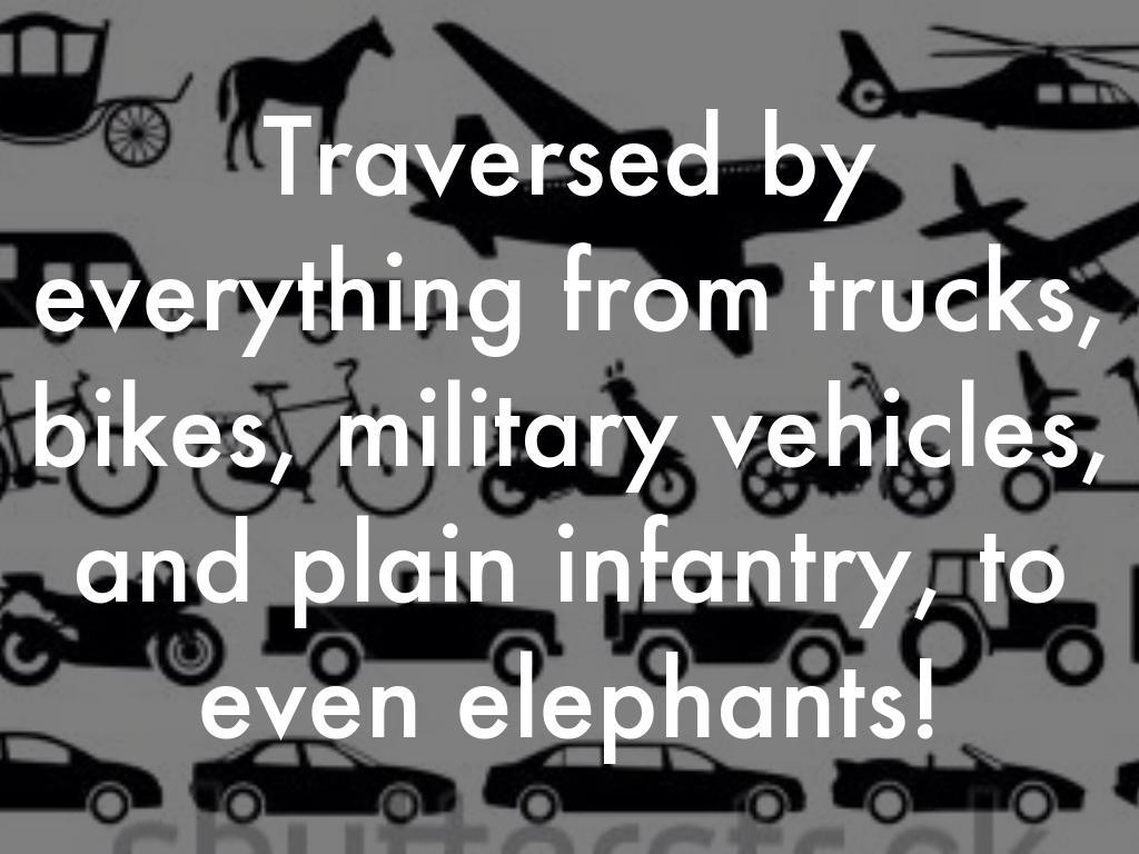 Traversed by everything from trucks, bikes, military vehicles, and plain infantry, to even elephants!