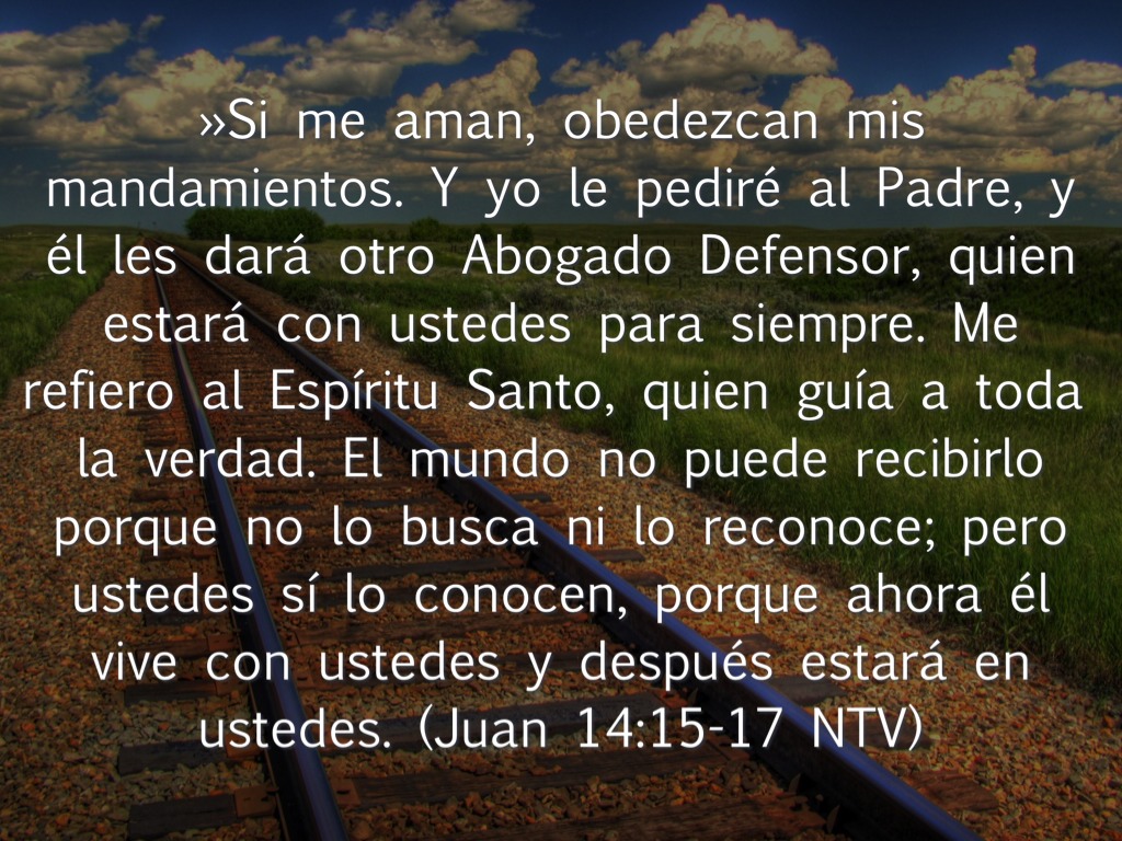 »Si me aman, obedezcan mis mandamientos. Y yo le pediré al Padre, y él les dará otro Abogado Defensor, quien estará con ustedes para siempre. Me refiero al Espíritu Santo, quien guía a toda la verdad. El mundo no puede recibirlo porque no lo busca ni lo reconoce; pero ustedes sí lo conocen, porque ahora él vive con ustedes y después estará en ustedes. (‭Juan‬ ‭14‬:‭15-17‬ NTV)