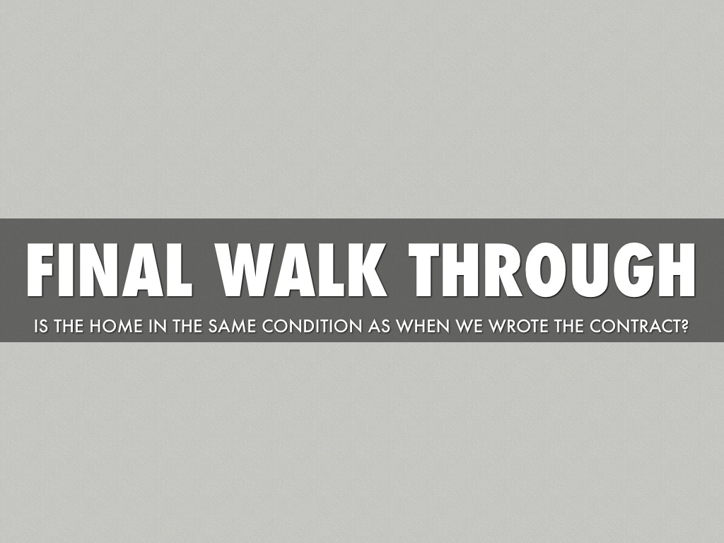 IS THE HOME IN THE SAME CONDITION AS WHEN WE WROTE THE CONTRACT?
