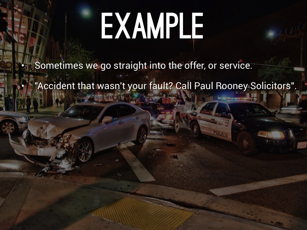 "Accident that wasn't your fault? Call Paul Rooney Solicitors".