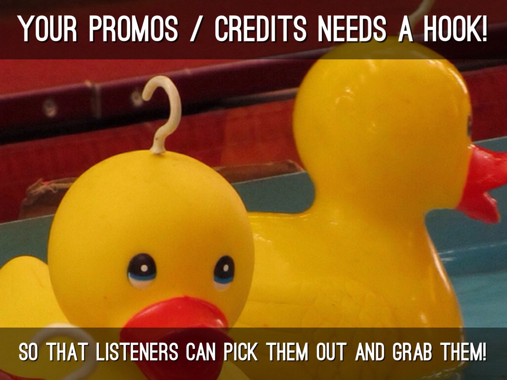 YOUR PROMOS / CREDITS NEEDS A HOOK!