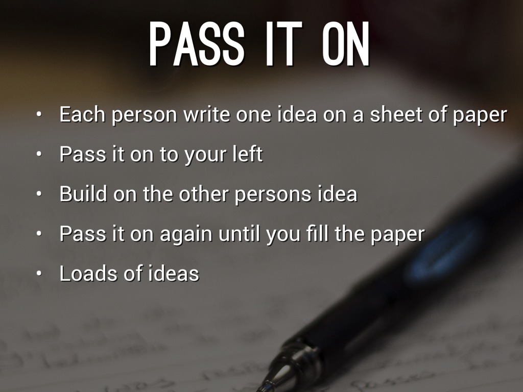 SOME METHODS THE CREATIVE TEAM USE WE'D LIKE TO PASS ON