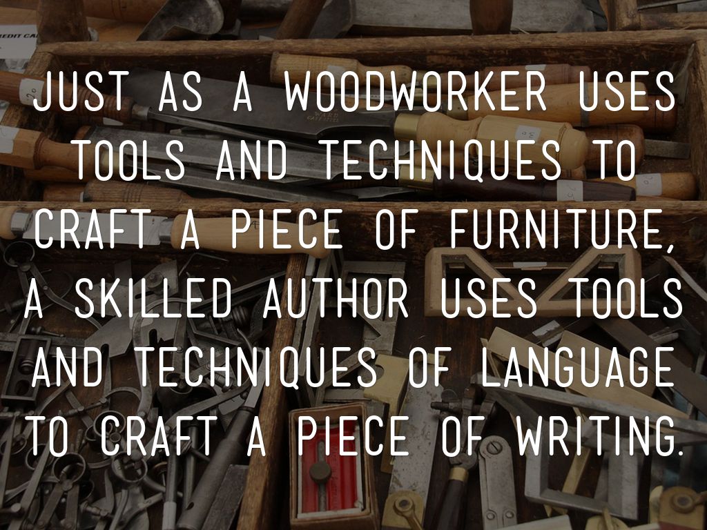 Just as a woodworker uses tools and techniques to craft a piece of furniture, a skilled author uses tools and techniques of language to craft a piece of writing.