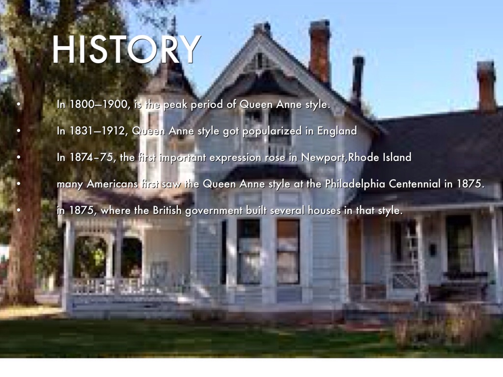 many Americans first saw the Queen Anne style at the Philadelphia Centennial in 1875.