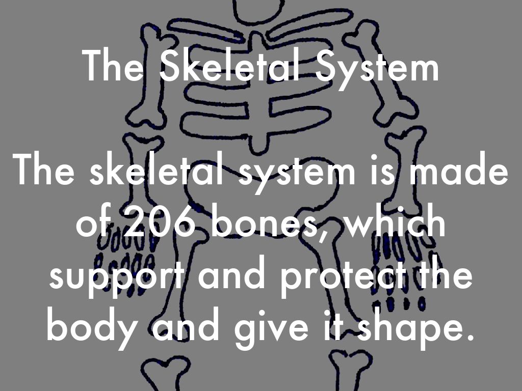 The skeletal system is made of 206 bones, which support and protect the body and give it shape.