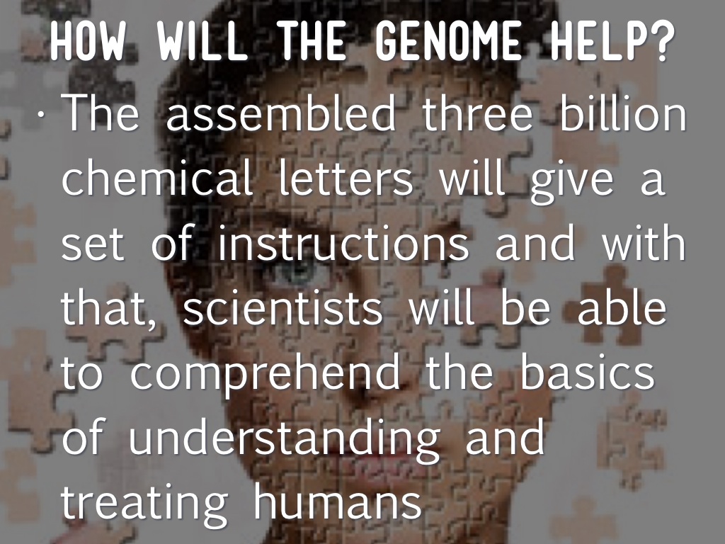 The assembled three billion chemical letters will give a set of instructions and with that, scientists will be able to comprehend the basics of understanding and treating humans
