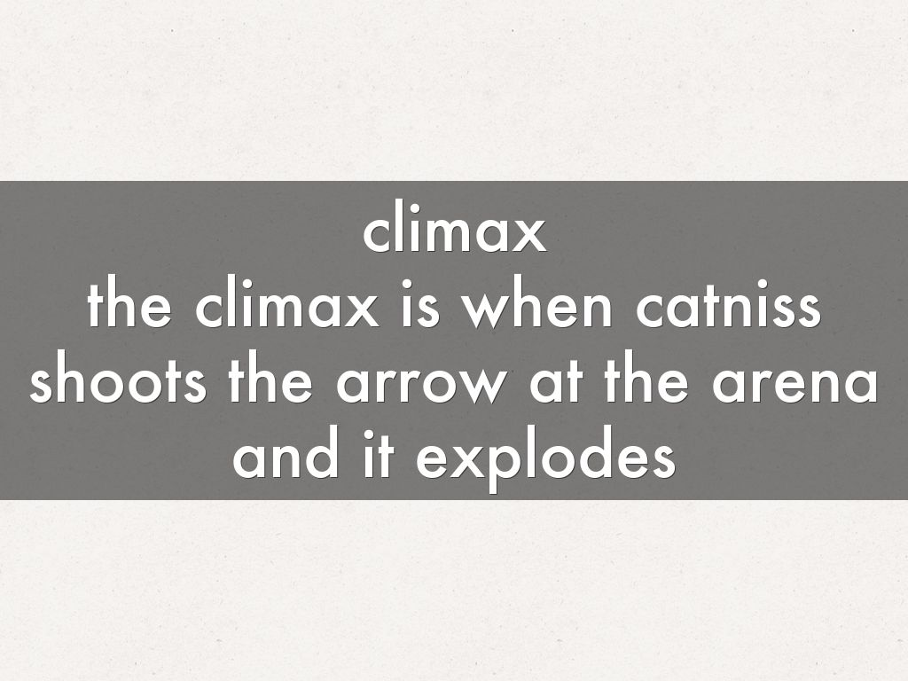 the climax is when catniss shoots the arrow at the arena and it explodes