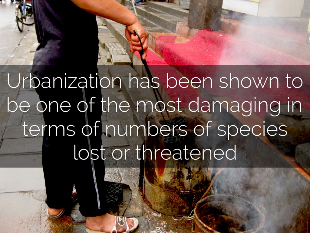 Urbanization has been shown to be one of the most damaging in terms of numbers of species lost or threatened