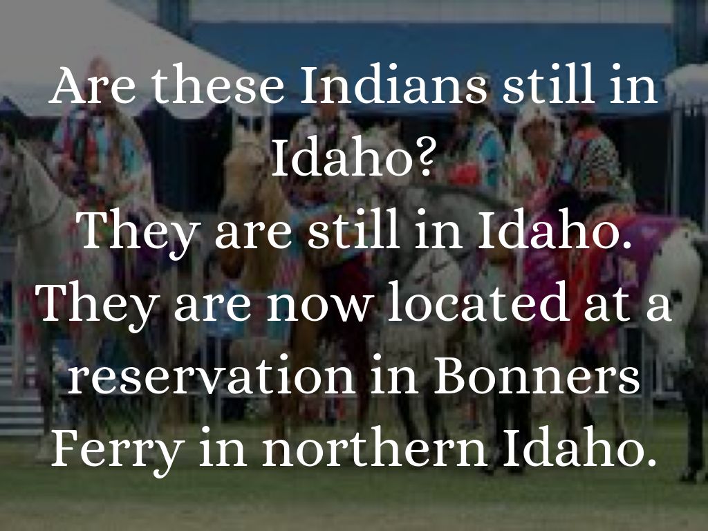 They are still in Idaho. They are now located at a reservation in Bonners Ferry in northern Idaho.