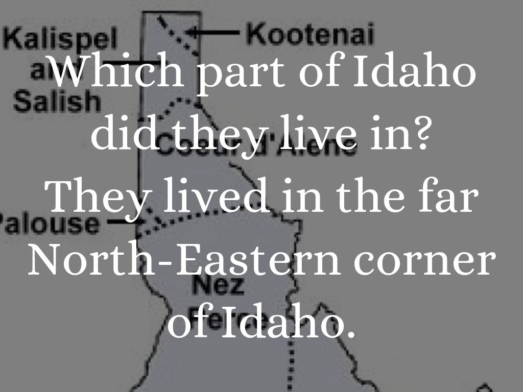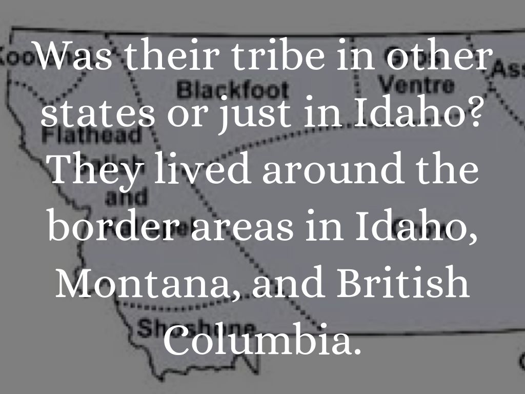 They lived around the border areas in Idaho, Montana, and British Columbia.