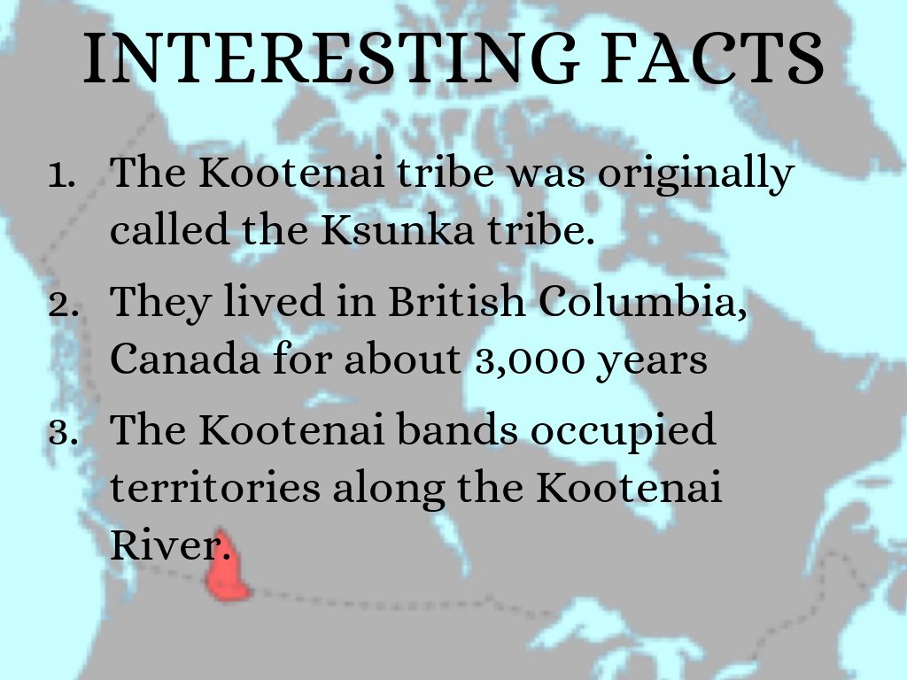 - The Kootenai tribe was originally called the Ksunka tribe.