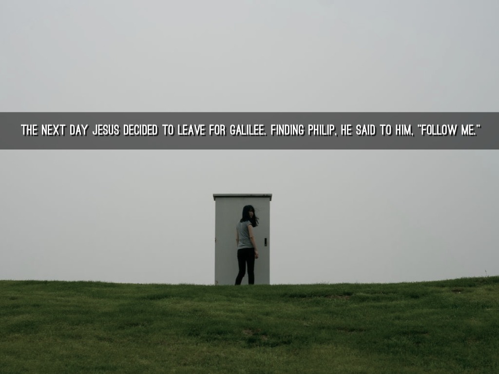 THE NEXT DAY JESUS DECIDED TO LEAVE FOR GALILEE. FINDING PHILIP, HE SAID TO HIM, “FOLLOW ME.”