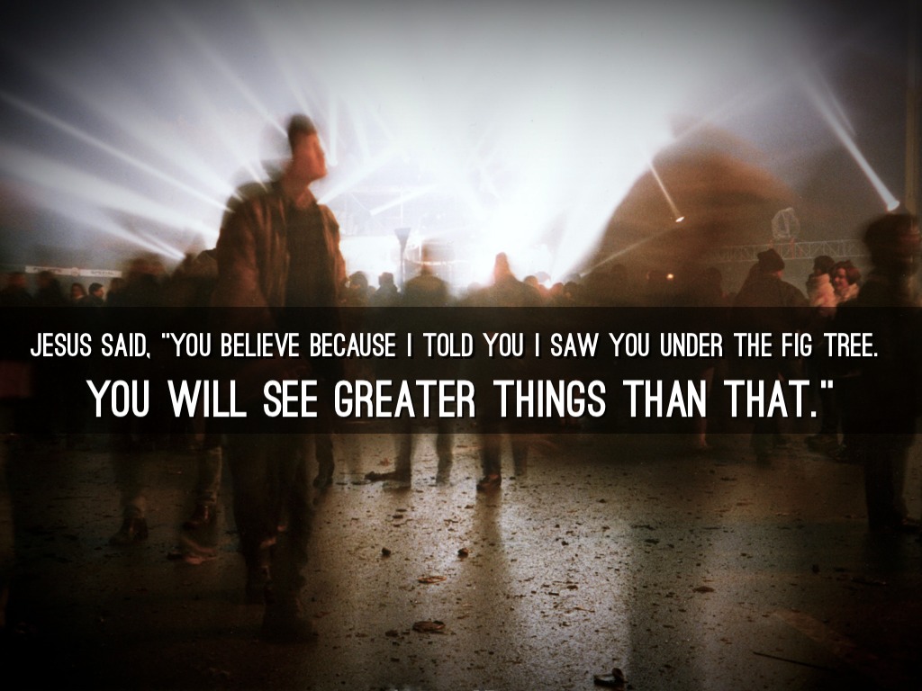Jesus said, “You believe because I told you I saw you under the fig tree.