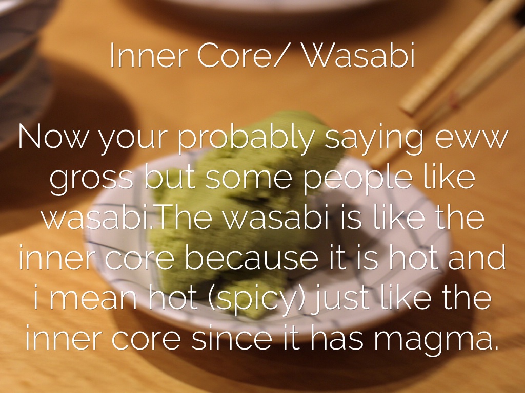 Now your probably saying eww gross but some people like wasabi.The wasabi is like the inner core because it is hot and i mean hot (spicy) just like the inner core since it has magma.