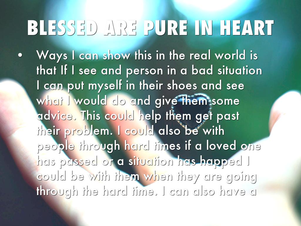 Ways I can show this in the real world is that If I see and person in a bad situation I can put myself in their shoes and see what I would do and give them some advice. This could help them get past their problem. I could also be with people through hard times if a loved one has passed or a situation has happed I could be with them when they are going through the hard time. I can also have a time to meet with a person that is having a hard time and just simply talk with them.
