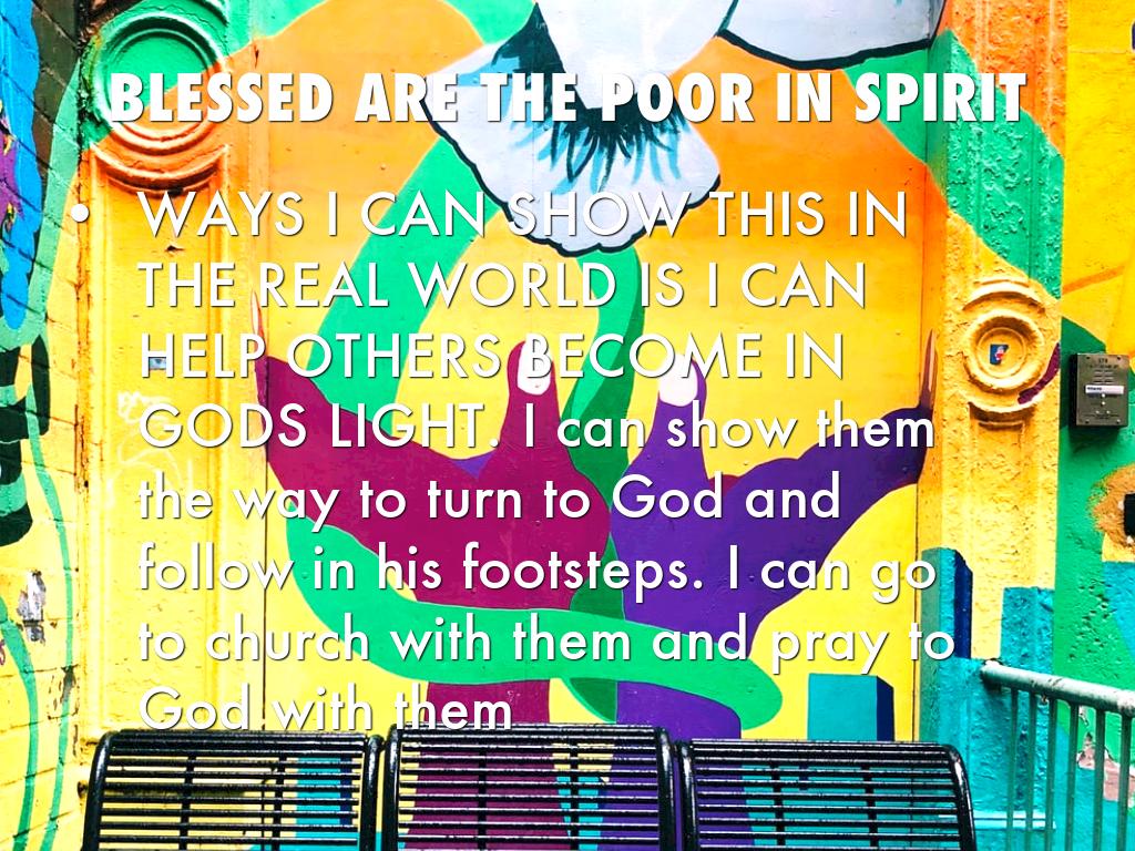 WAYS I CAN SHOW THIS IN THE REAL WORLD IS I CAN HELP OTHERS BECOME IN GODS LIGHT. I can show them the way to turn to God and follow in his footsteps. I can go to church with them and pray to God with them