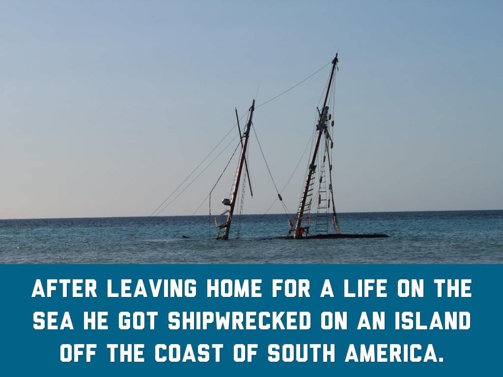 After leaving home for a life on the sea he got shipwrecked on an island off the coast of south america.