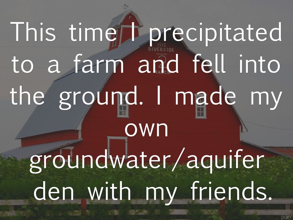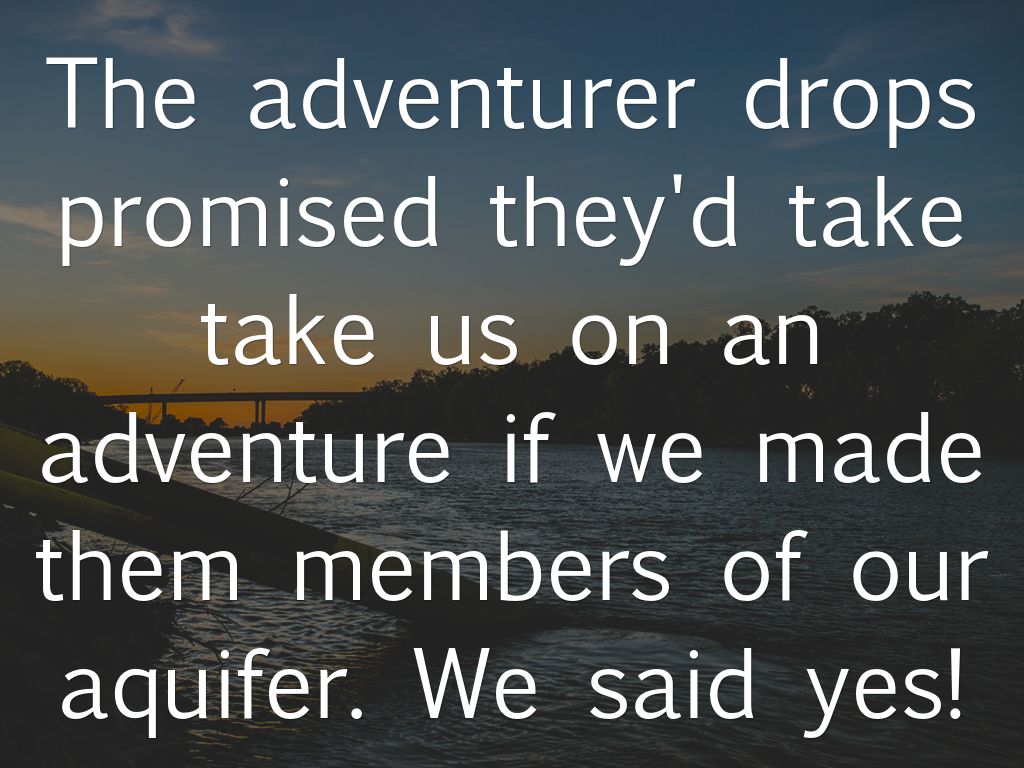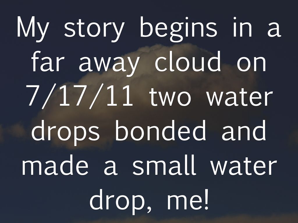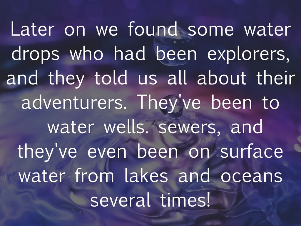 Later on we found some water drops who had been explorers, and they told us all about their adventurers. They've been to water wells. sewers, and they've even been on surface water from lakes and oceans several times!