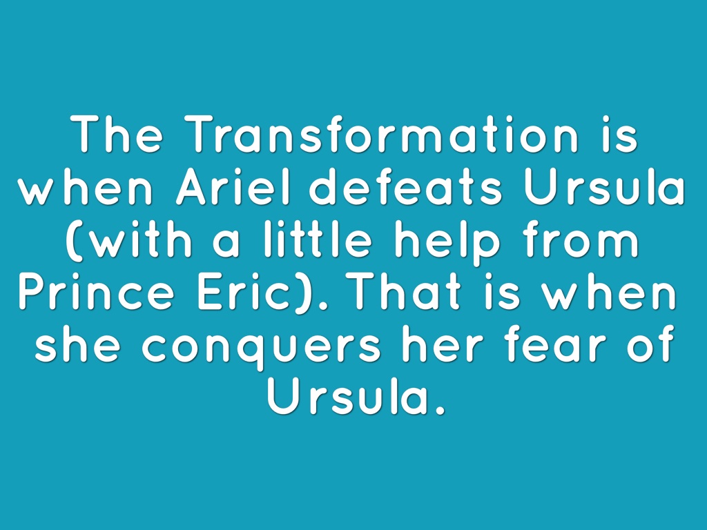 The Transformation is when Ariel defeats Ursula (with a little help from Prince Eric). That is when she conquers her fear of Ursula.