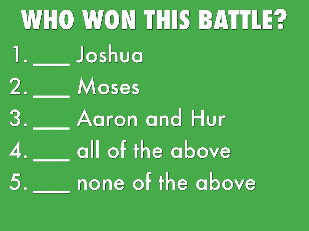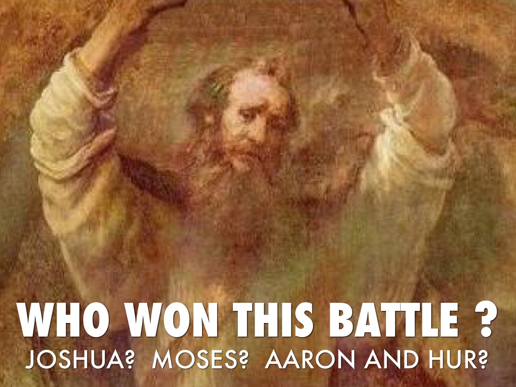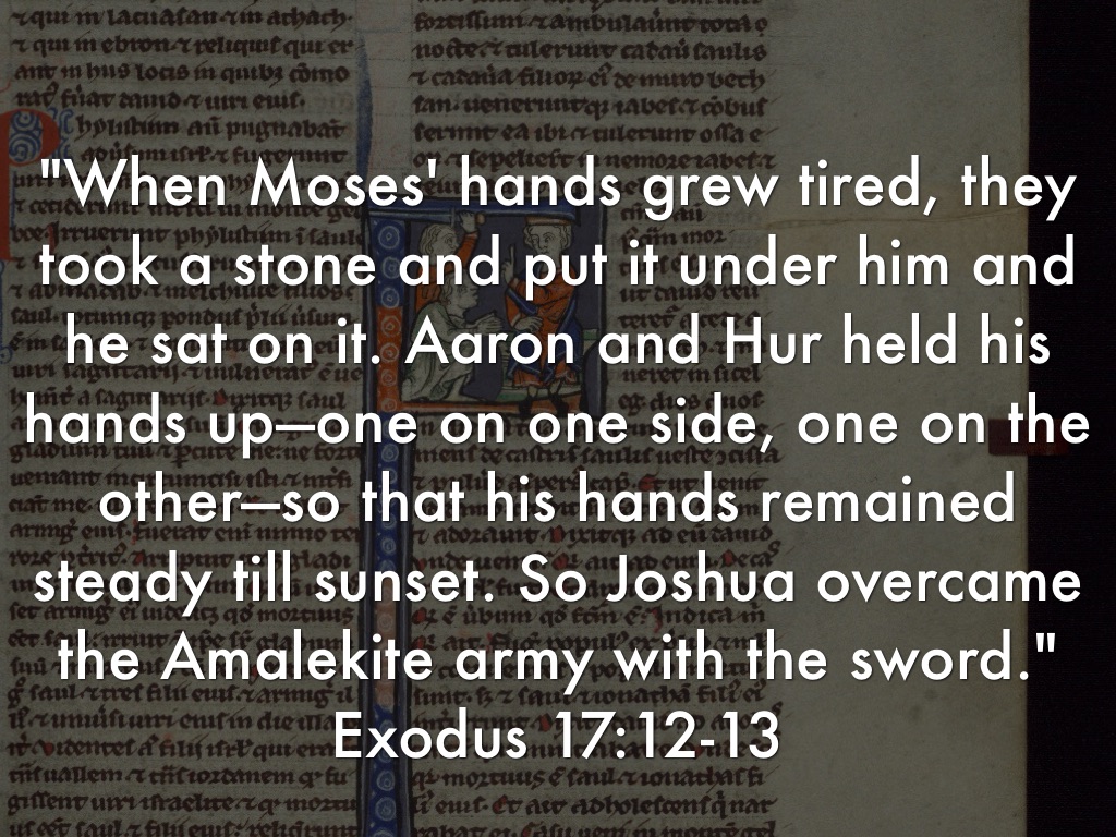 "So Joshua fought the Amalekites as Moses had ordered, and Moses, Aaron and Hur went to the top of the hill. As long as Moses held up his hands, the Israelites were winning, but whenever he lowered his hands, the Amalekites were winning." Exodus 17:10-11