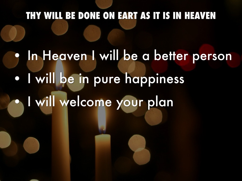 THY WILL BE DONE ON EART AS IT IS IN Heaven