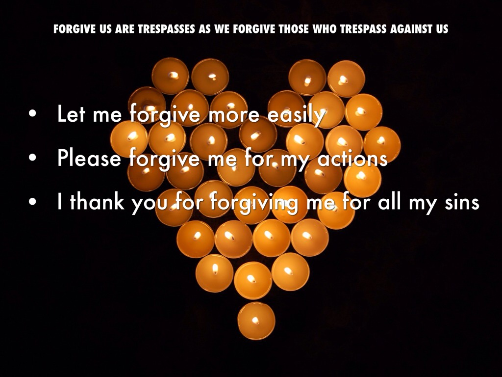 FORGIVE US ARE TRESPASSES AS WE FORGIVE THOSE WHO TRESPASS AGAINST US