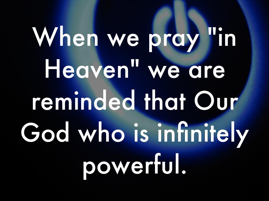 When we pray "in Heaven" we are reminded that Our God who is infinitely powerful.