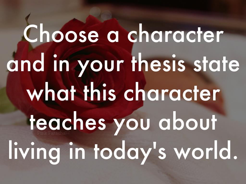 Choose a character and in your thesis state what this character teaches you about living in today's world.