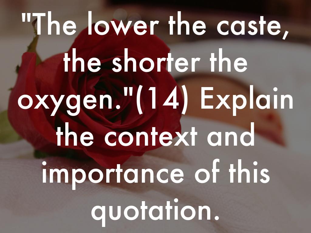 "The lower the caste, the shorter the oxygen."(14) Explain the context and importance of this quotation.