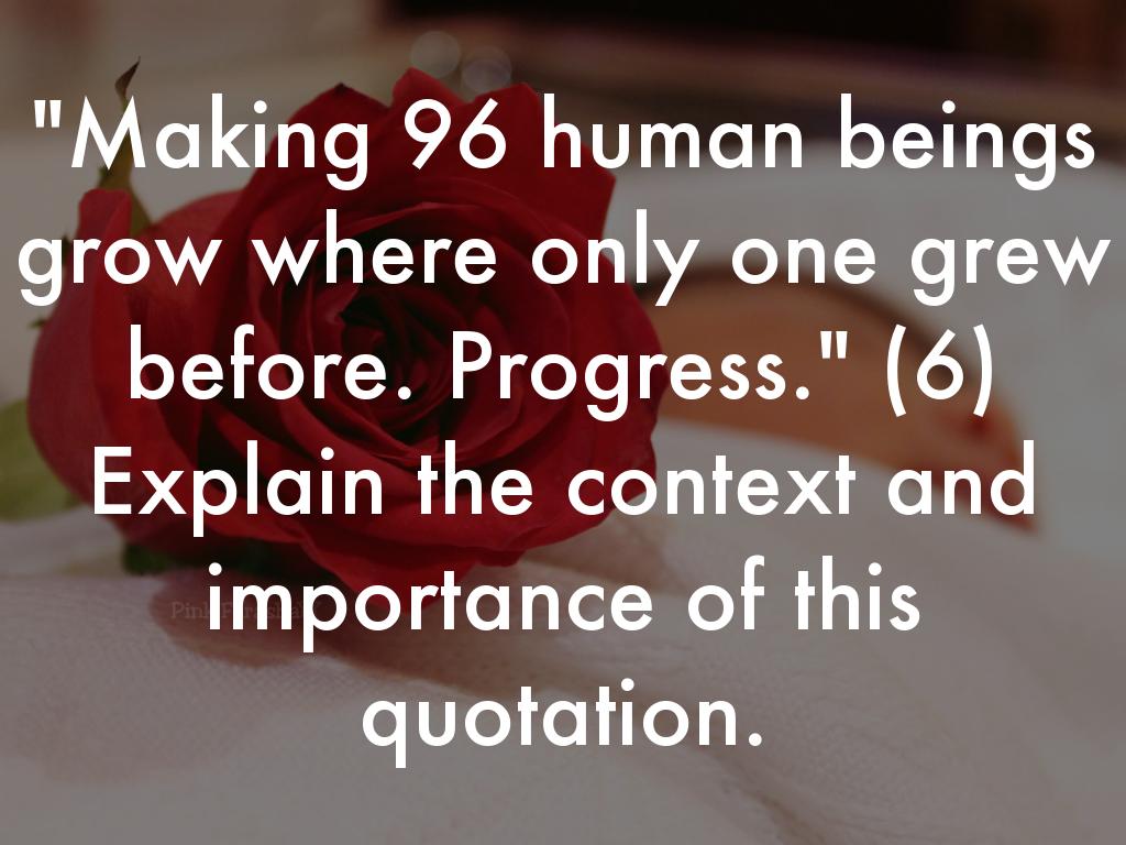 "Making 96 human beings grow where only one grew before. Progress." (6)