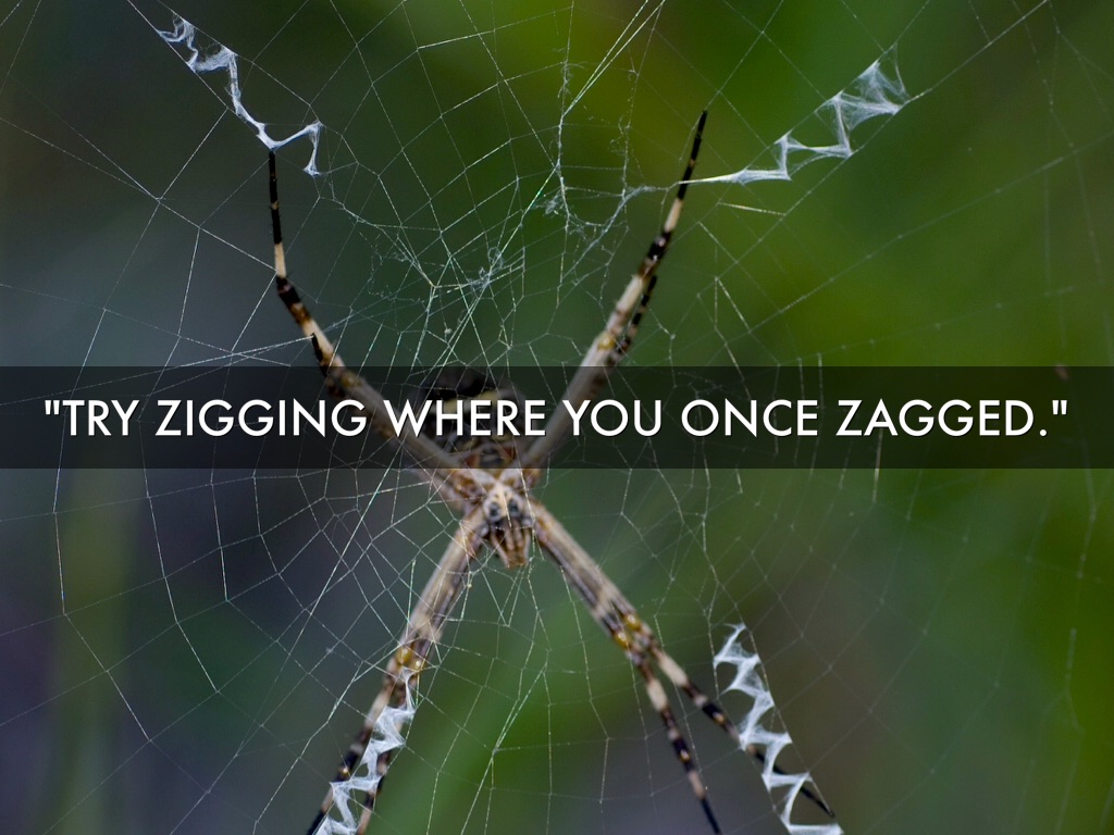 "TRY ZIGGING WHERE YOU ONCE ZAGGED."