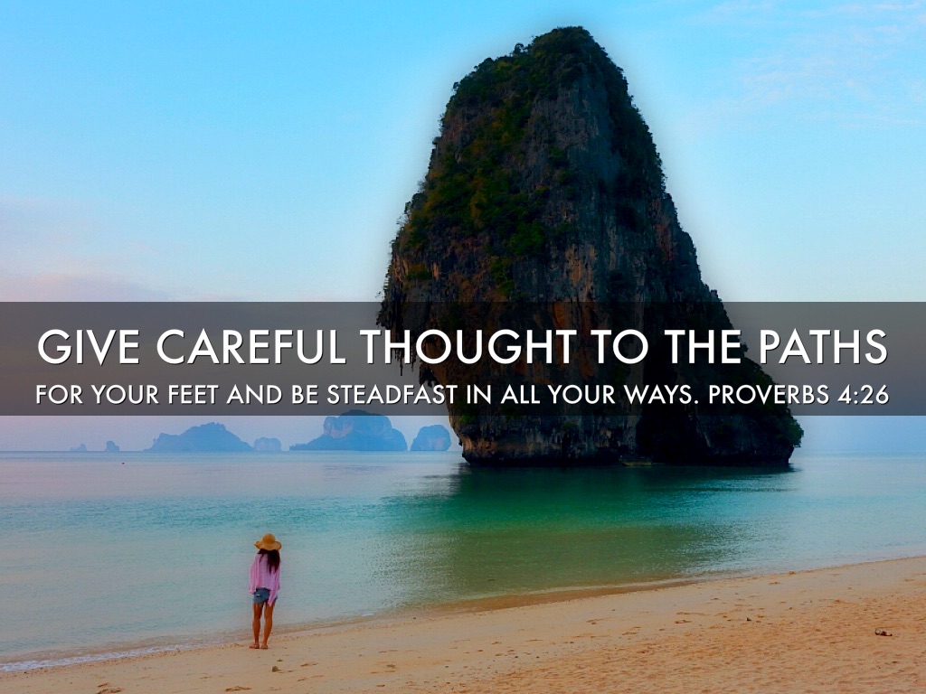 FOR YOUR FEET AND BE STEADFAST IN ALL YOUR WAYS. PROVERBS 4:26