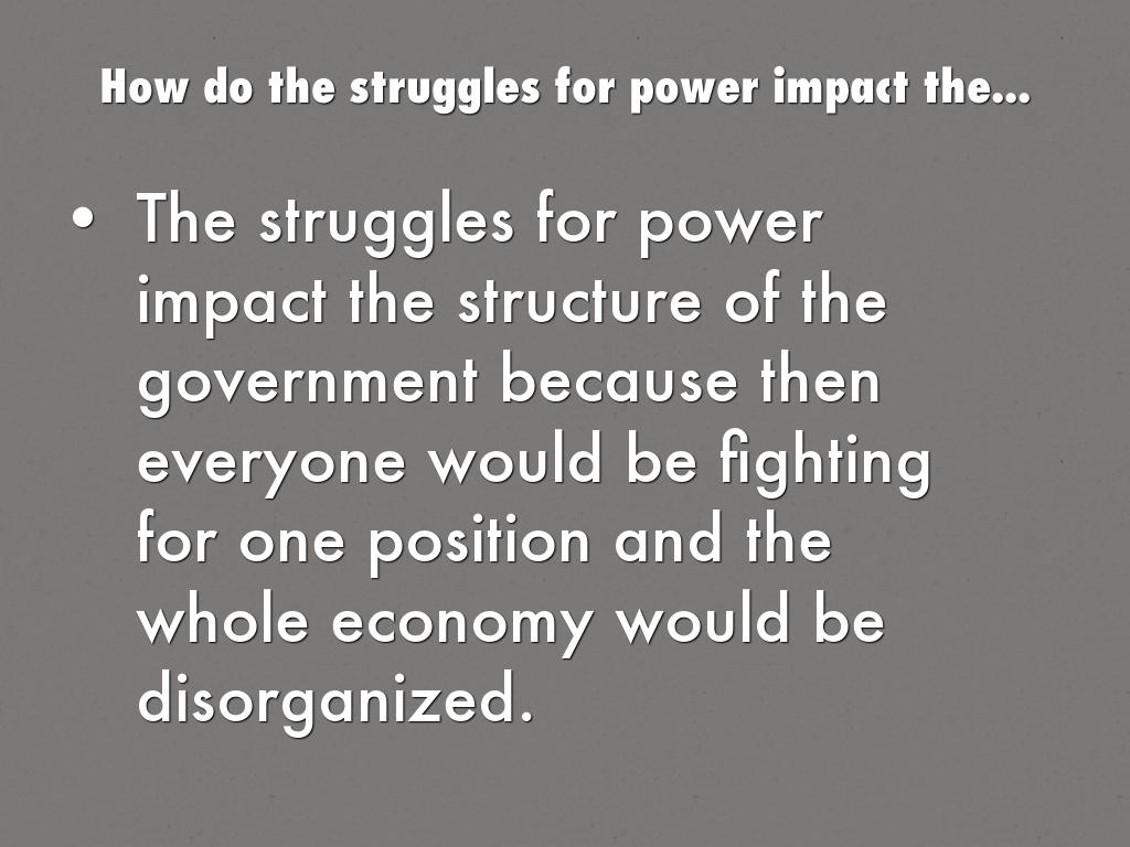 The struggles for power impact the structure of the government because then everyone would be fighting for one position and the whole economy would be disorganized.
