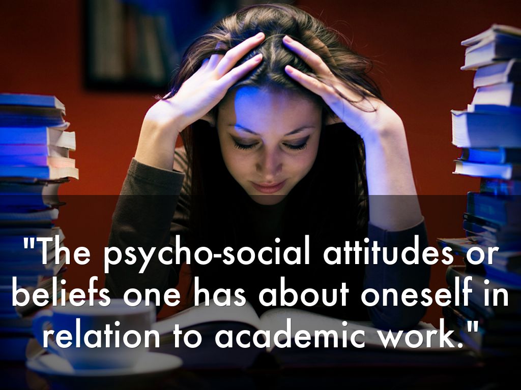 "The psycho-social attitudes or beliefs one has about oneself in relation to academic work."
