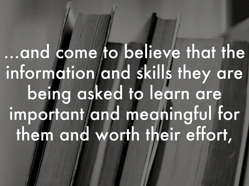...and come to believe that the information and skills they are being asked to learn are important and meaningful for them and worth their effort,