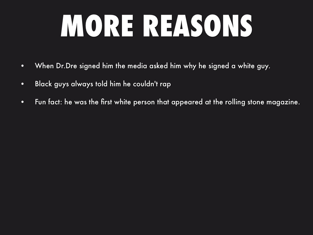 When Dr.Dre signed him the media asked him why he signed a white guy.