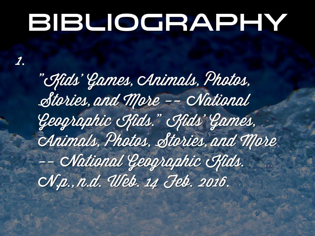 "Kids' Games, Animals, Photos, Stories, and More -- National Geographic Kids." Kids' Games, Animals, Photos, Stories, and More -- National Geographic Kids. N.p., n.d. Web. 14 Feb. 2016.