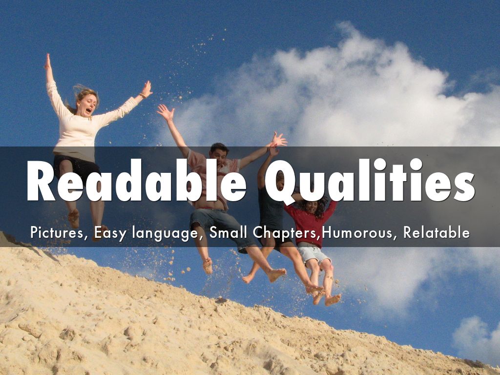 Pictures, Easy language, Small Chapters,Humorous, Relatable