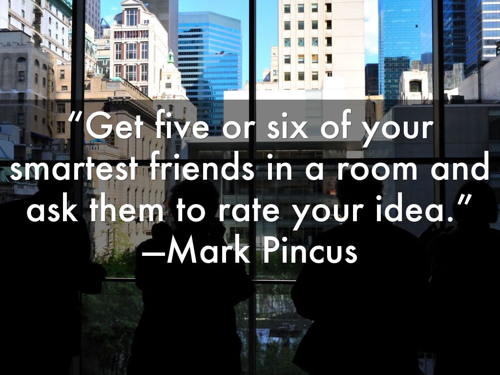 “Get five or six of your smartest friends in a room and ask them to rate your idea.”