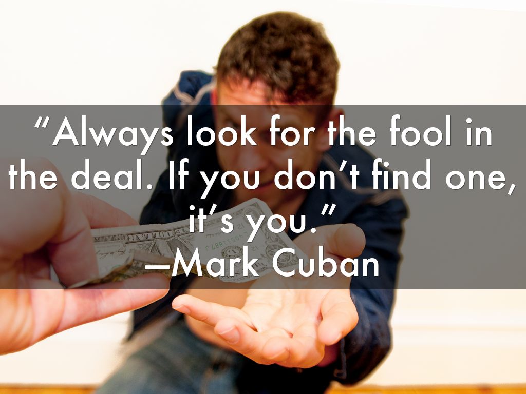 “Always look for the fool in the deal. If you don’t find one, it’s you.”