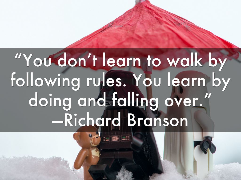 “You don’t learn to walk by following rules. You learn by doing and falling over.”