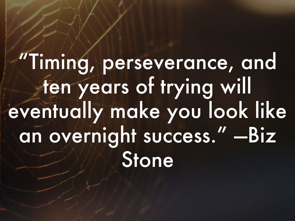 “Timing, perseverance, and ten years of trying will eventually make you look like an overnight success.” —Biz Stone