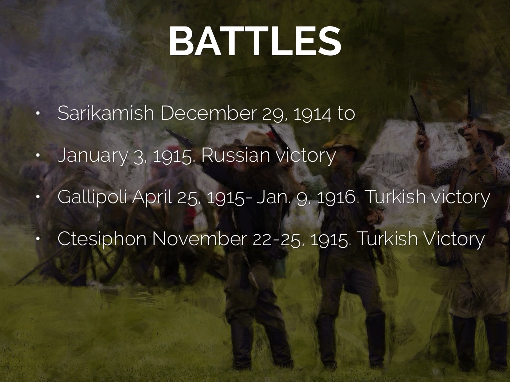 Gallipoli April 25, 1915- Jan. 9, 1916. Turkish victory