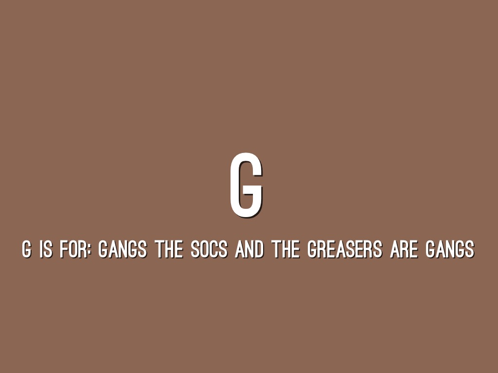 G IS FOR: GANGS THE SOCS AND THE GREASERS ARE GANGS
