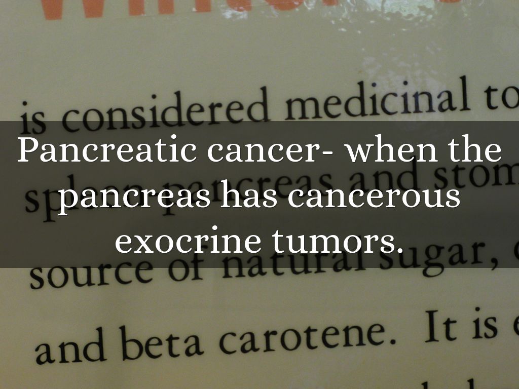 Pancreatic cancer- when the pancreas has cancerous exocrine tumors.