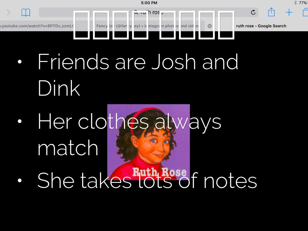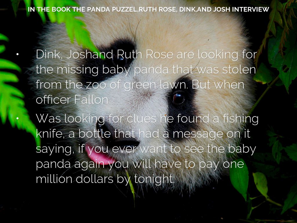 IN THE BOOK THE PANDA PUZZEL,RUTH ROSE, DINK,AND JOSH INTERVIEW