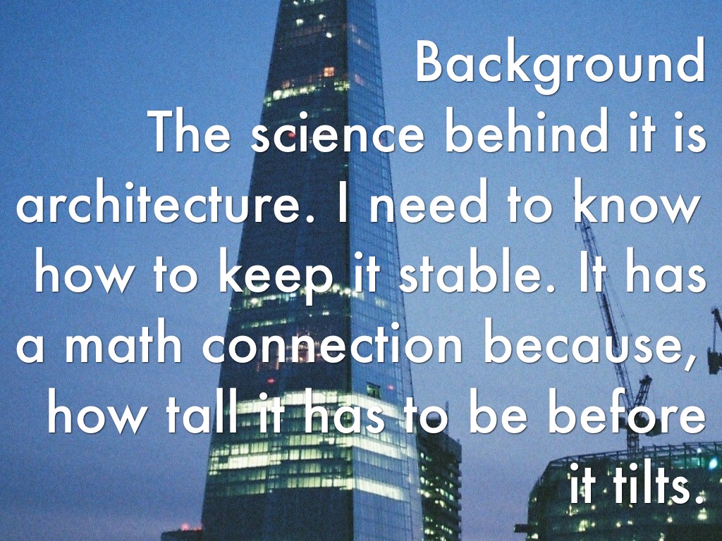 The science behind it is architecture. I need to know how to keep it stable. It has a math connection because, how tall it has to be before it tilts.