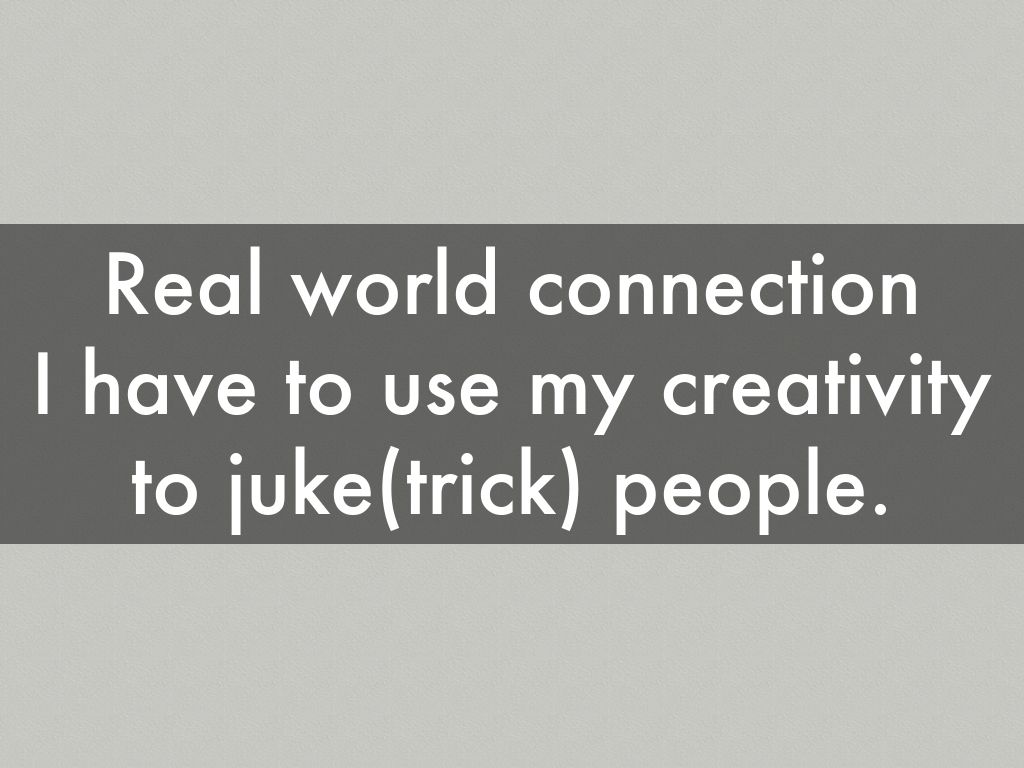 I have to use my creativity to juke(trick) people.